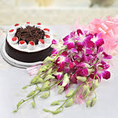1/2 kg black forest cake with 6 orchids bouquet 2 kg fruit basket and 1/2 kg dry fruit basket